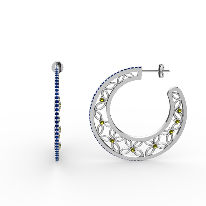 Lab safir ve peridot 8 ayar beyaz altın küpe