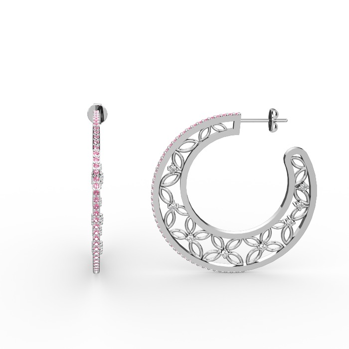 Pembe kuvars ve beyaz zirkon 18 ayar beyaz altın küpe