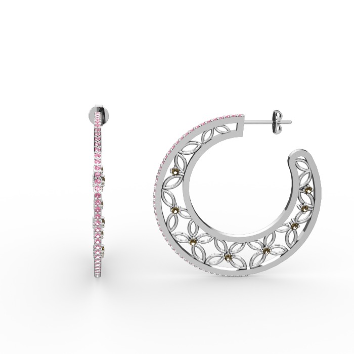 Pembe kuvars ve dumanlı kuvars 8 ayar beyaz altın küpe