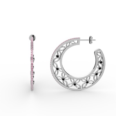 Pembe kuvars ve siyah zirkon 8 ayar beyaz altın küpe