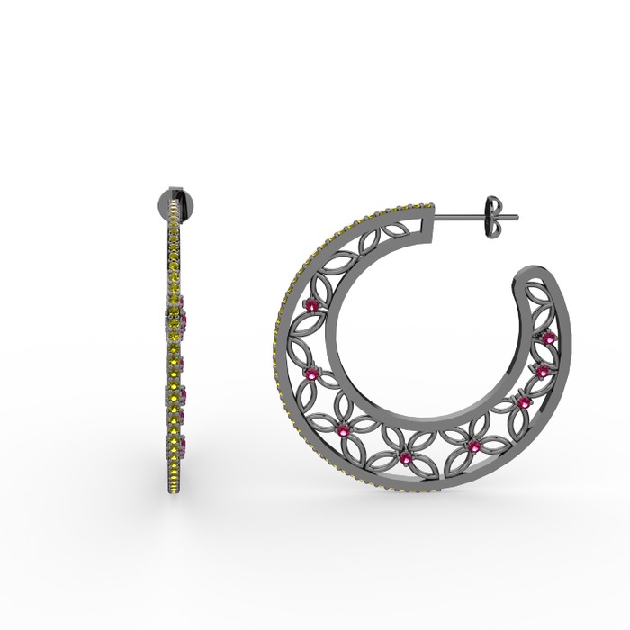 Peridot ve rodolit garnet 925 ayar siyah rodyum kaplama gümüş küpe