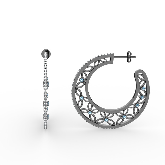 Pırlanta ve akuamarin 925 ayar siyah rodyum kaplama gümüş küpe (0.99 karat)