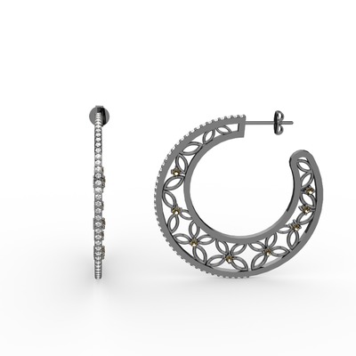 Pırlanta ve dumanlı kuvars 925 ayar siyah rodyum kaplama gümüş küpe (0.99 karat)