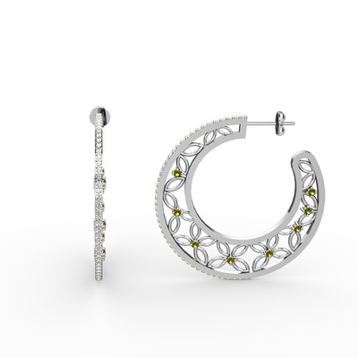 Pırlanta ve peridot 14 ayar beyaz altın küpe (0.99 karat)