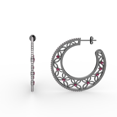 Pırlanta ve rodolit garnet 925 ayar siyah rodyum kaplama gümüş küpe (0.99 karat)