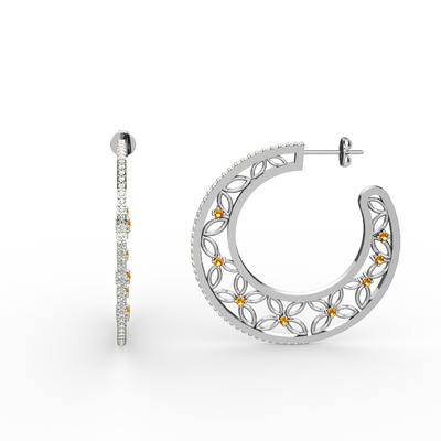 Pırlanta ve sitrin 18 ayar beyaz altın küpe (0.99 karat)