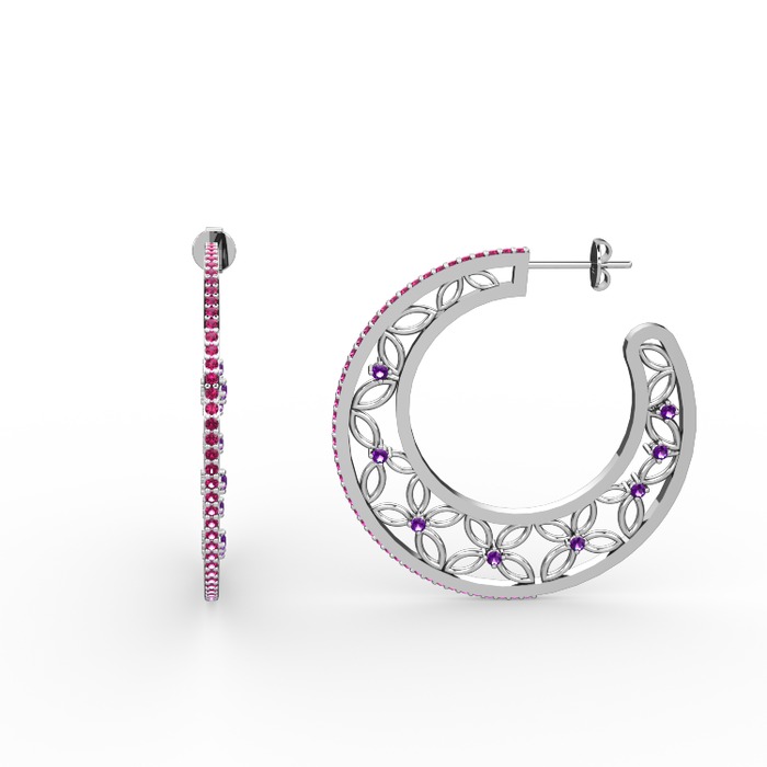 Rodolit garnet ve ametist 8 ayar beyaz altın küpe