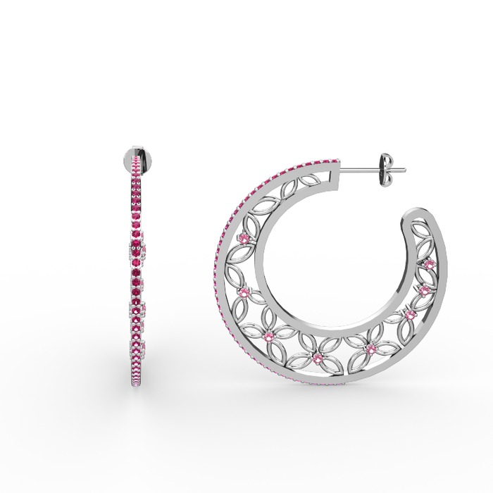 Rodolit garnet ve pembe kuvars 18 ayar beyaz altın küpe