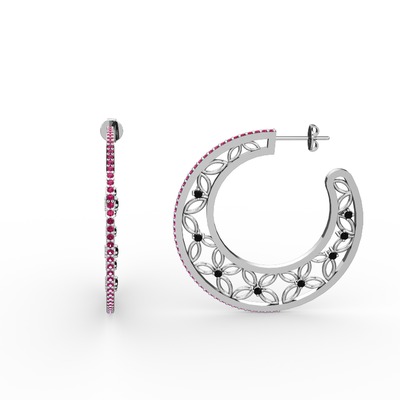 Rodolit garnet ve siyah zirkon 8 ayar beyaz altın küpe