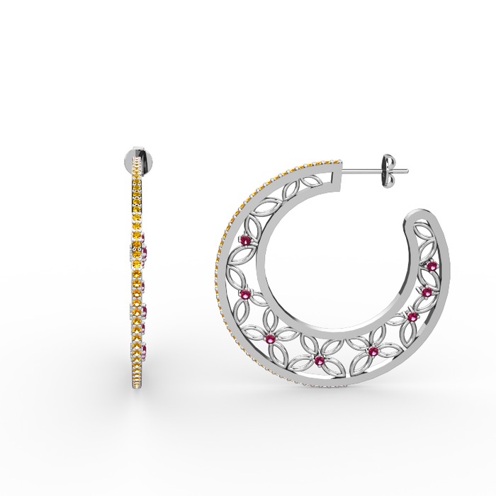 Sitrin ve rodolit garnet 8 ayar beyaz altın küpe