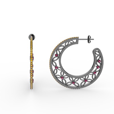 Sitrin ve rodolit garnet 925 ayar siyah rodyum kaplama gümüş küpe