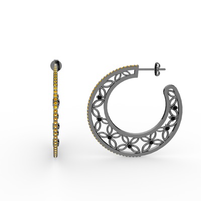 Sitrin ve siyah zirkon 925 ayar siyah rodyum kaplama gümüş küpe