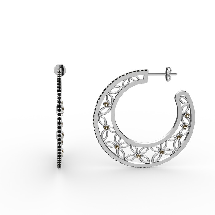 Siyah zirkon ve dumanlı kuvars 925 ayar gümüş küpe