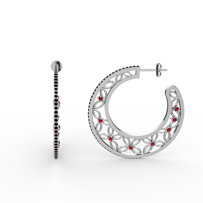 Siyah zirkon ve garnet 8 ayar beyaz altın küpe