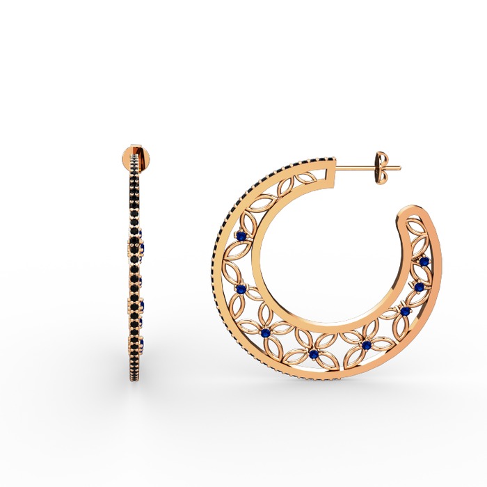Siyah zirkon ve lab safir 14 ayar rose altın küpe