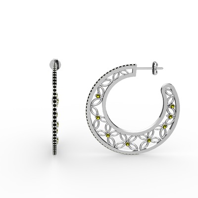 Siyah zirkon ve peridot 14 ayar beyaz altın küpe