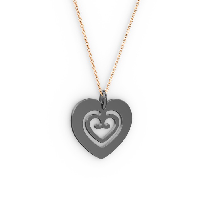 925 ayar siyah rodyum kaplama gümüş kolye (40 cm rose altın rolo zincir)