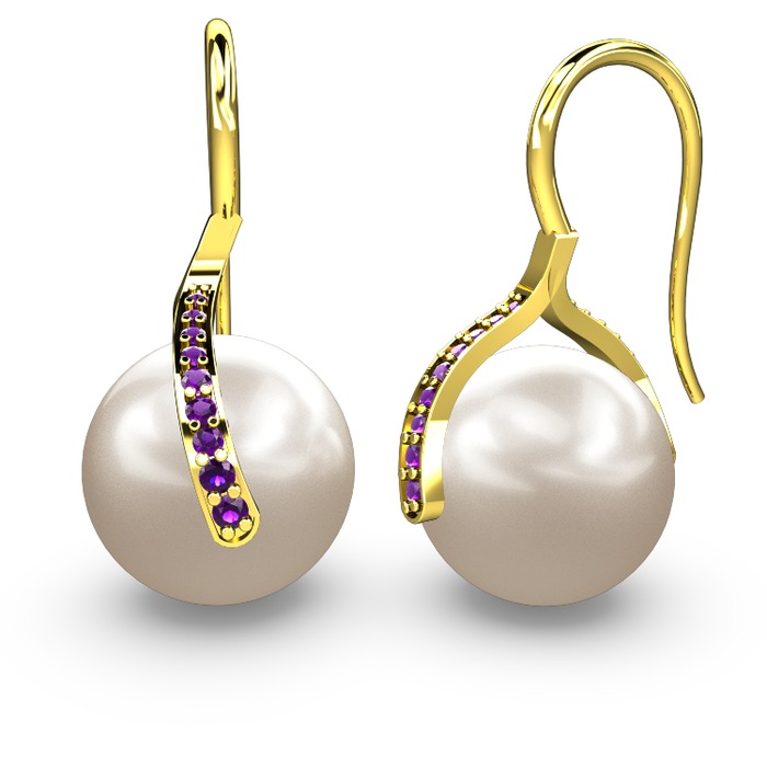 Inci ve ametist 925 ayar altın kaplama gümüş küpe