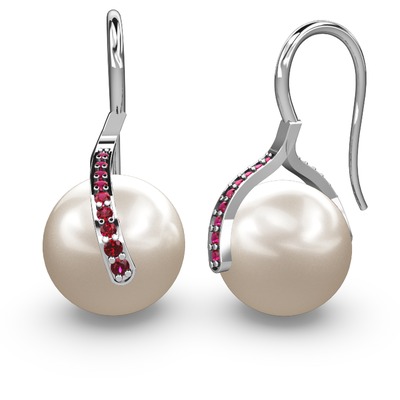 Inci ve rodolit garnet 8 ayar beyaz altın küpe