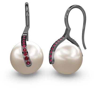 Inci ve rodolit garnet 925 ayar siyah rodyum kaplama gümüş küpe