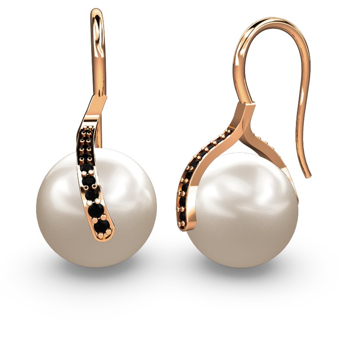 Inci ve siyah zirkon 18 ayar rose altın küpe