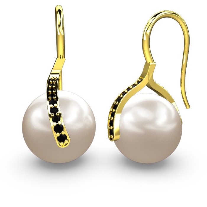 Inci ve siyah zirkon 925 ayar altın kaplama gümüş küpe