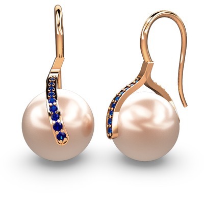 Pembe inci ve lab safir 925 ayar rose altın kaplama gümüş küpe