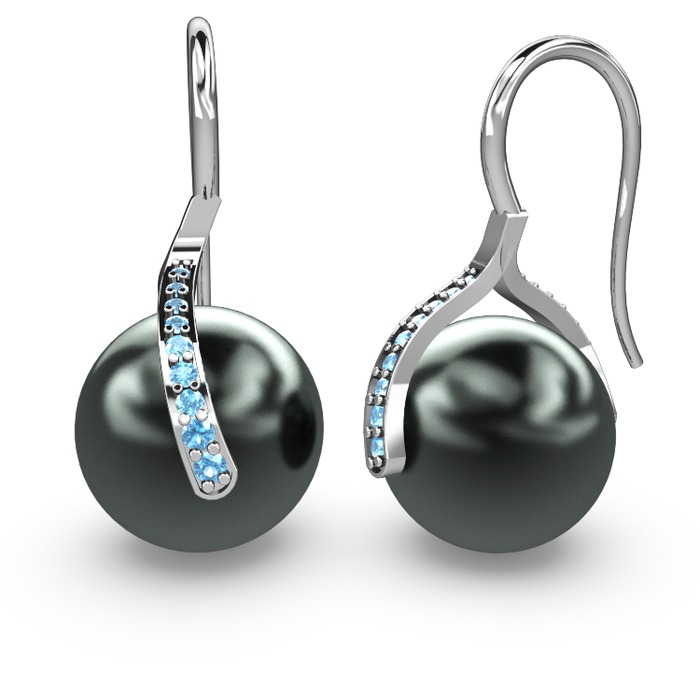 Siyah inci ve akuamarin 8 ayar beyaz altın küpe