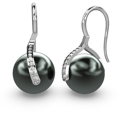 Siyah inci ve swarovski 14 ayar beyaz altın küpe