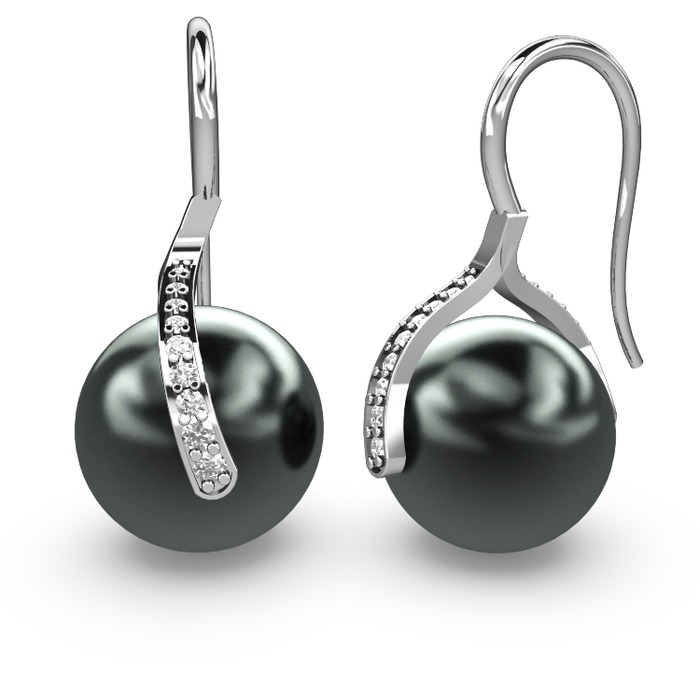 Siyah inci ve swarovski 8 ayar beyaz altın küpe