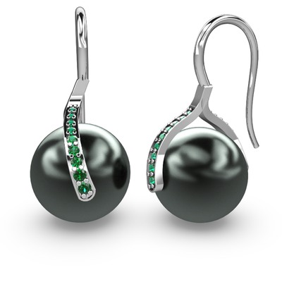 Siyah inci ve yeşil kuvars 8 ayar beyaz altın küpe
