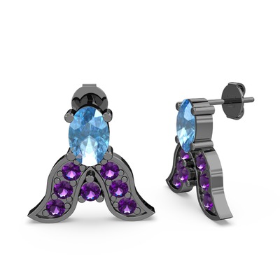 Akuamarin ve ametist 925 ayar siyah rodyum kaplama gümüş küpe