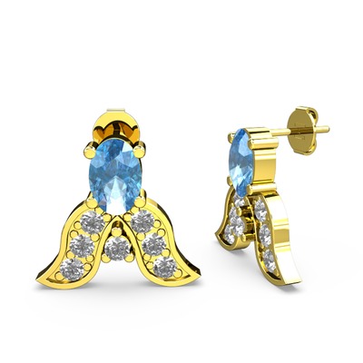 Akuamarin ve beyaz zirkon 14 ayar altın küpe