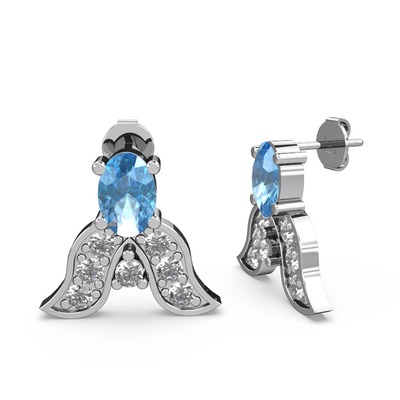 Akuamarin ve beyaz zirkon 18 ayar beyaz altın küpe