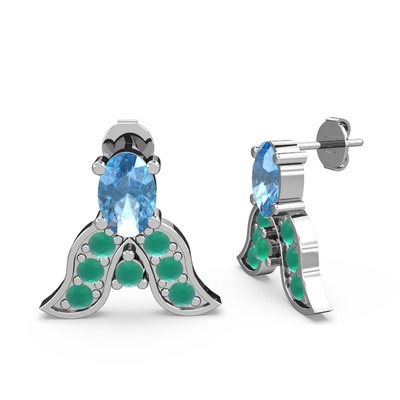 Akuamarin ve kök zümrüt 8 ayar beyaz altın küpe