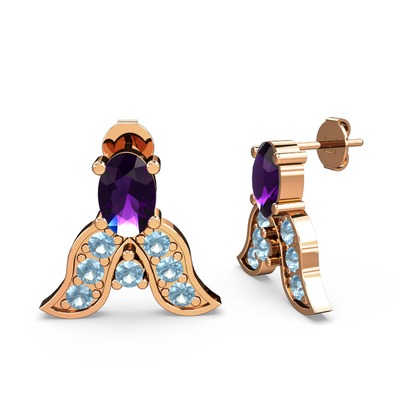 Ametist ve akuamarin 14 ayar rose altın küpe