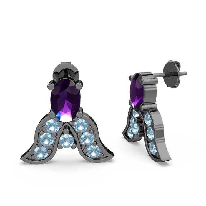 Ametist ve akuamarin 925 ayar siyah rodyum kaplama gümüş küpe