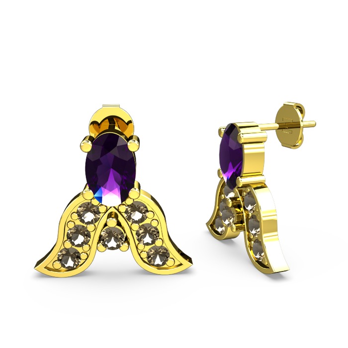 Ametist ve dumanlı kuvars 8 ayar altın küpe