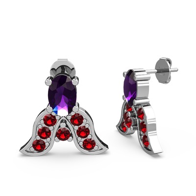 Ametist ve garnet 14 ayar beyaz altın küpe