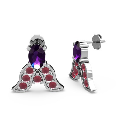 Ametist ve kök yakut 18 ayar beyaz altın küpe