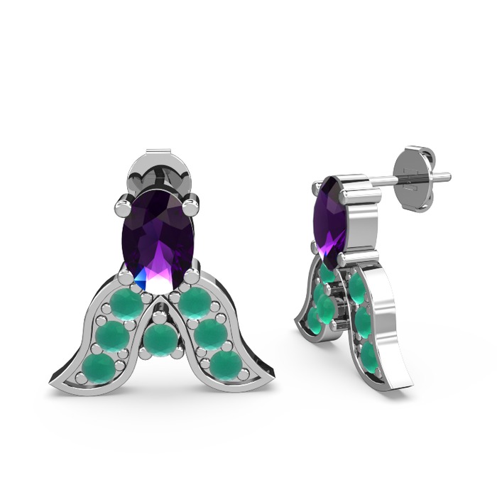 Ametist ve kök zümrüt 8 ayar beyaz altın küpe