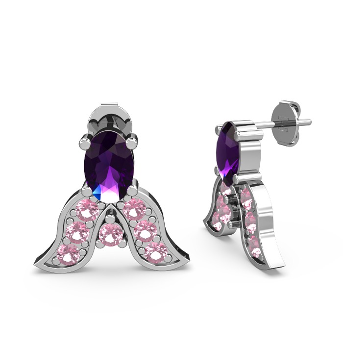 Ametist ve pembe kuvars 925 ayar gümüş küpe