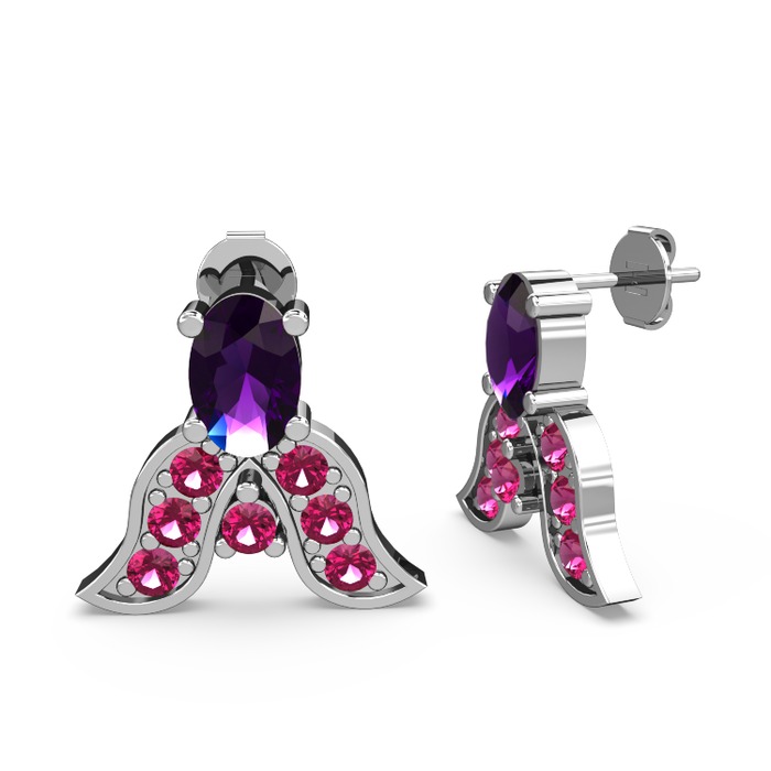 Ametist ve rodolit garnet 14 ayar beyaz altın küpe