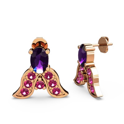 Ametist ve rodolit garnet 14 ayar rose altın küpe