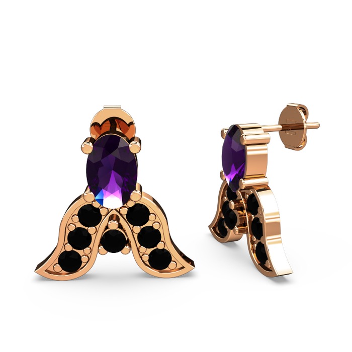 Ametist ve siyah zirkon 925 ayar rose altın kaplama gümüş küpe