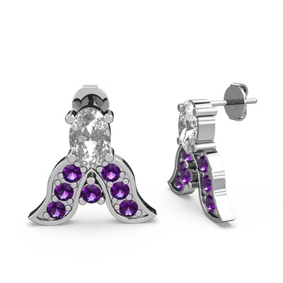 Beyaz zirkon ve ametist 14 ayar beyaz altın küpe