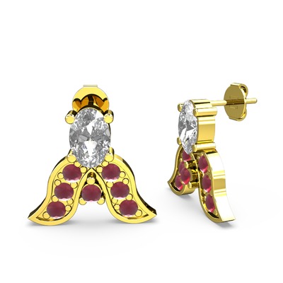 Beyaz zirkon ve kök yakut 925 ayar altın kaplama gümüş küpe
