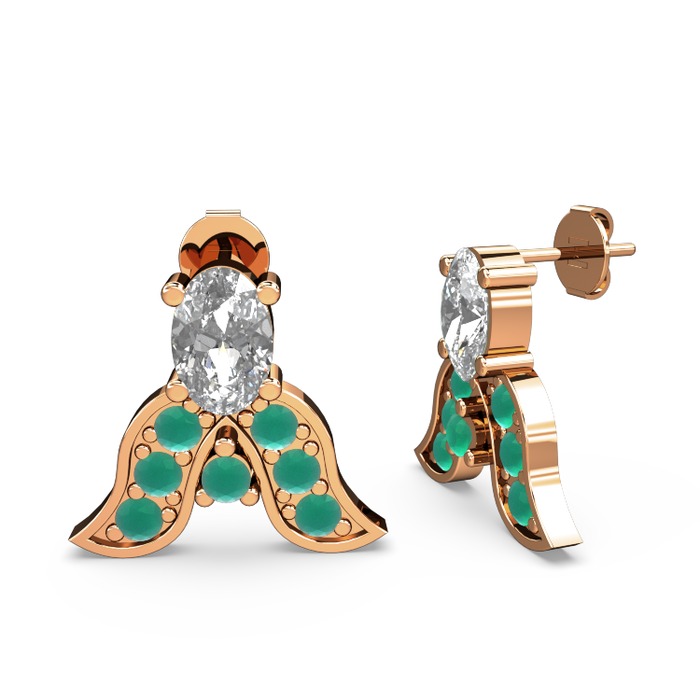 Beyaz zirkon ve kök zümrüt 8 ayar rose altın küpe