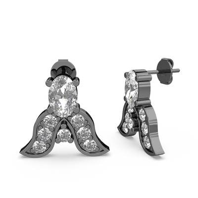 Beyaz zirkon ve pırlanta 925 ayar siyah rodyum kaplama gümüş küpe (0.504 karat)