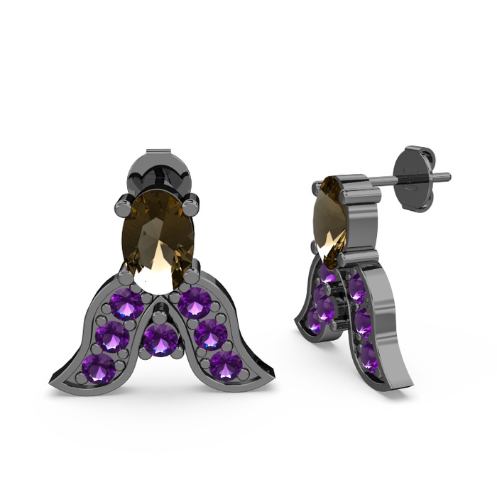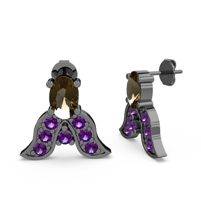Dumanlı kuvars ve ametist 925 ayar siyah rodyum kaplama gümüş küpe